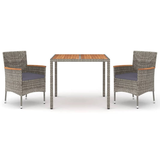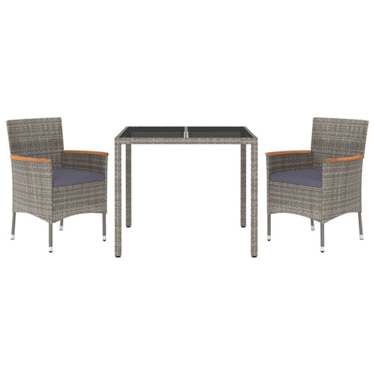 3-tlg. Garten-Essgruppe mit Kissen Grau Poly Rattan
