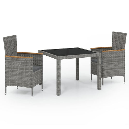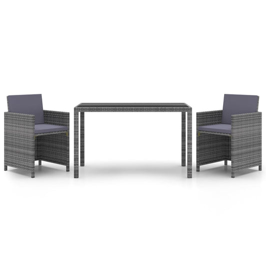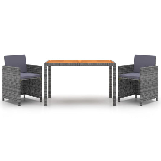 3-tlg. Garten-Essgruppe mit Grau Kissen Poly Rattan