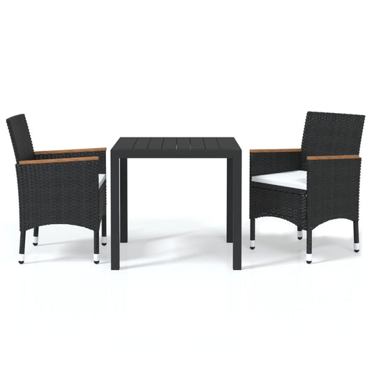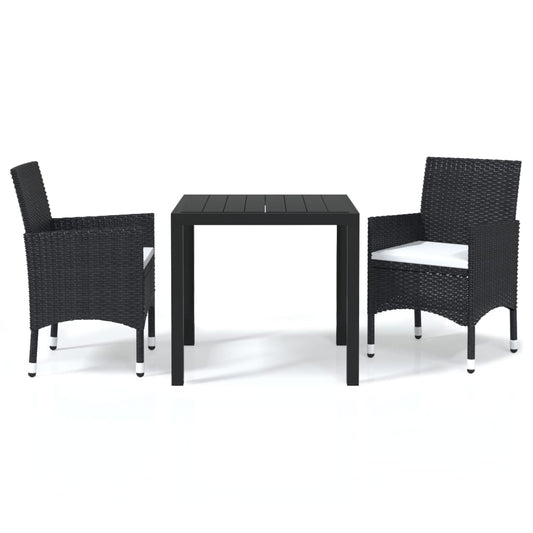 3-tlg. Garten-Essgruppe mit Kissen Schwarz Poly Rattan