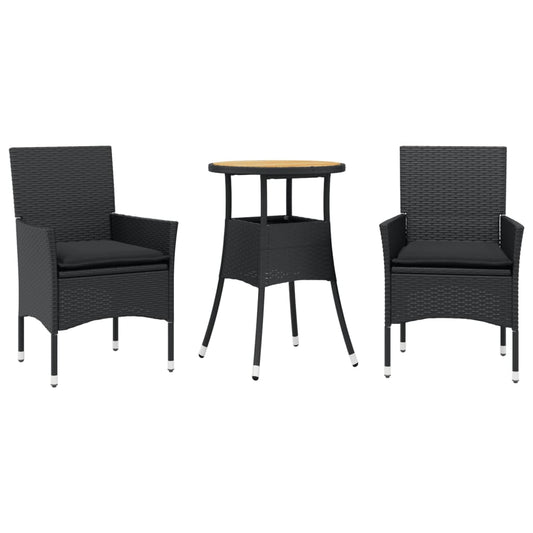 3-tlg. Garten-Essgruppe mit Kissen Schwarz Poly Rattan Akazie