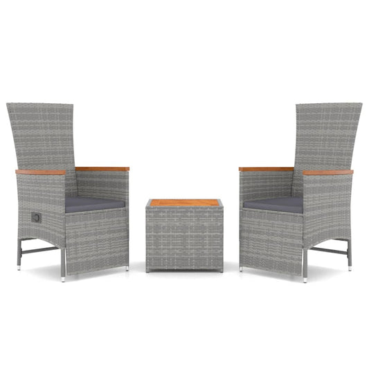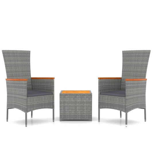 3-tlg. Garten-Lounge-Set Grau Poly Rattan & Massivholz Akazie