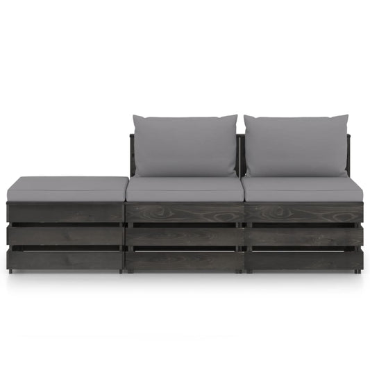 3-tlg. Garten-Lounge-Set mit Kissen Grau Imprägniertes Holz