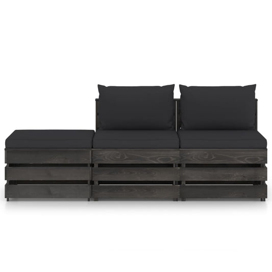 3-tlg. Garten-Lounge-Set mit Kissen Grau Imprägniertes Holz