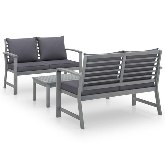 3-tlg. Garten-Lounge-Set mit Auflagen Massivholz Akazie