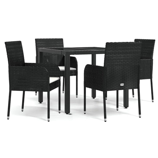 5-tlg. Garten-Essgruppe mit Kissen Schwarz Poly Rattan