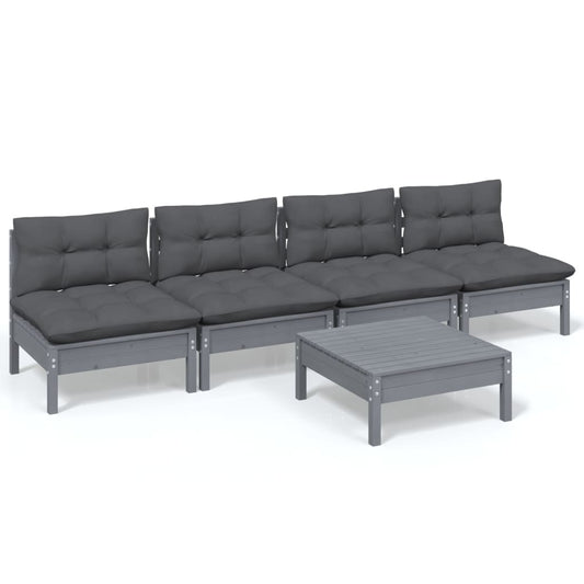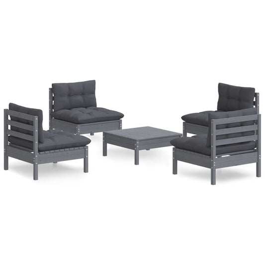 5-tlg. Garten-Lounge-Set mit Anthrazit Kissen Kiefernholz