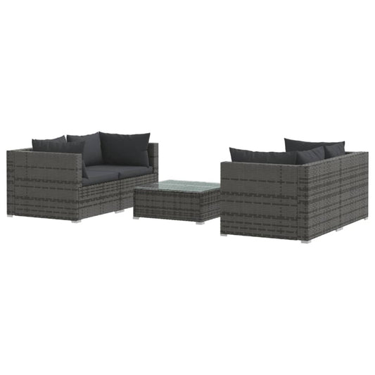 5-tlg. Garten-Lounge-Set mit Kissen Grau Poly Rattan