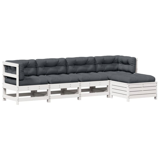 5-tlg. Garten-Lounge-Set mit Kissen Weiß Massivholz Kiefer