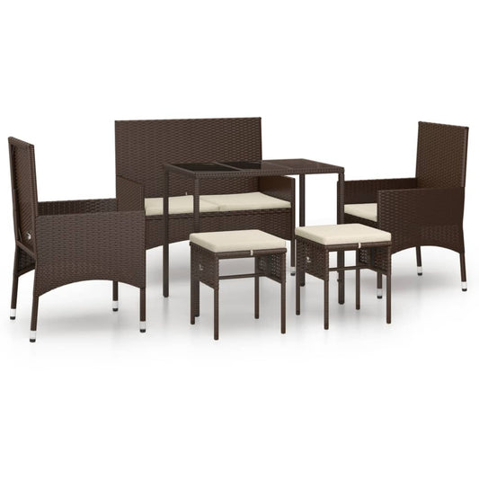 6-piece garden lounge set with cushions brown poly rattan