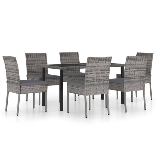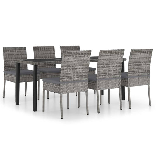 7-piece garden dining set poly rattan grey