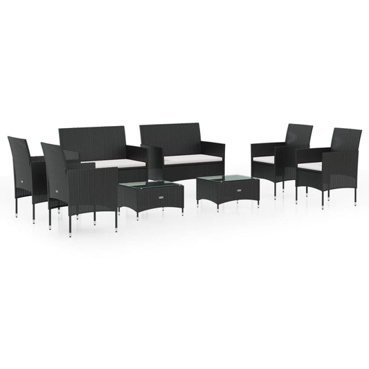 8-piece garden lounge set with cushions poly rattan black