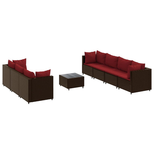 8-piece garden lounge set with cushions poly rattan brown