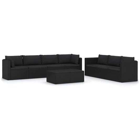 8-tlg. Garten-Lounge-Set mit Kissen Poly Rattan Schwarz