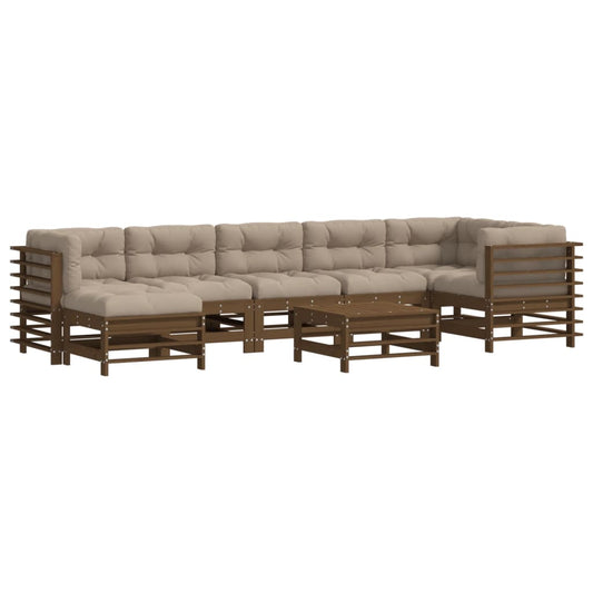 8-tlg. Garten-Lounge-Set mit Kissen Honigbraun Massivholz