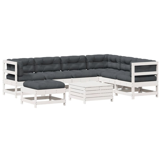 8-tlg. Garten-Lounge-Set mit Kissen Weiß Massivholz Kiefer
