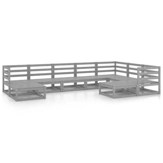 9-tlg. Garten-Lounge-Set Grau Kiefer Massivholz