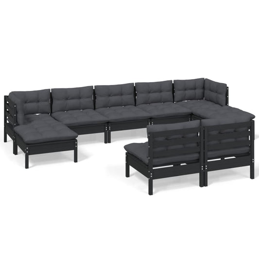9-tlg. Garten-Lounge-Set mit Kissen Schwarz Kiefernholz
