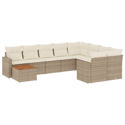 10-tlg. Garten-Sofagarnitur mit Kissen Beige Poly Rattan