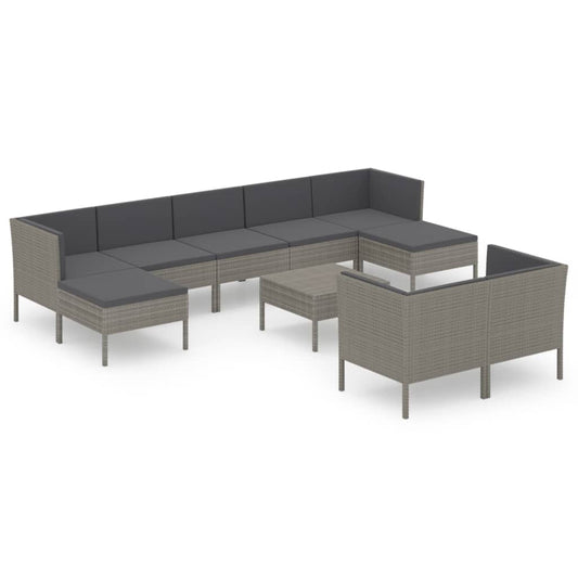 10-tlg. Garten-Lounge-Set mit Auflagen Poly Rattan Grau