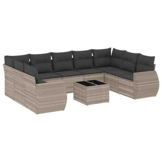 10-tlg. Garten-Sofagarnitur mit Kissen Hellgrau Poly Rattan