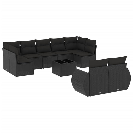 10-tlg. Garten-Sofagarnitur mit Kissen Schwarz Poly Rattan