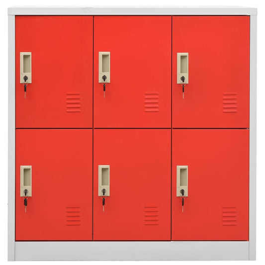 Locker cabinet light grey and red 90x45x92.5 cm steel