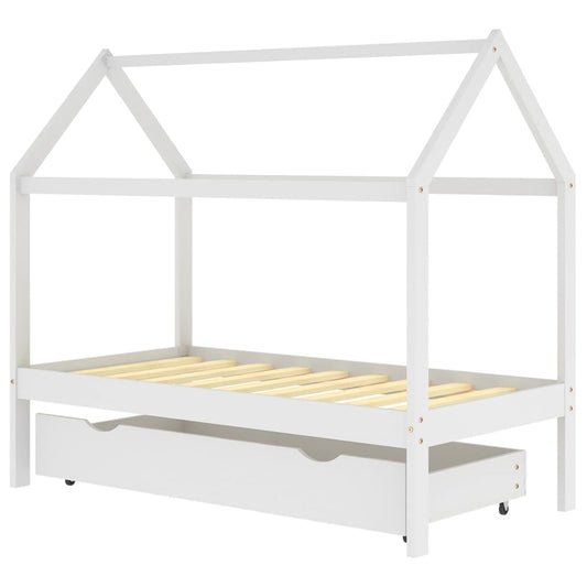 Kinderbett mit Schublade Weiß Massivholz Kiefer 80x160 cm