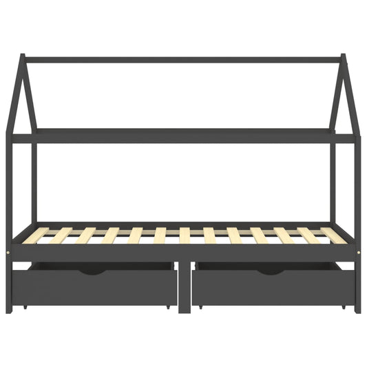 Children's bed with drawer dark grey solid pine 70x140 cm