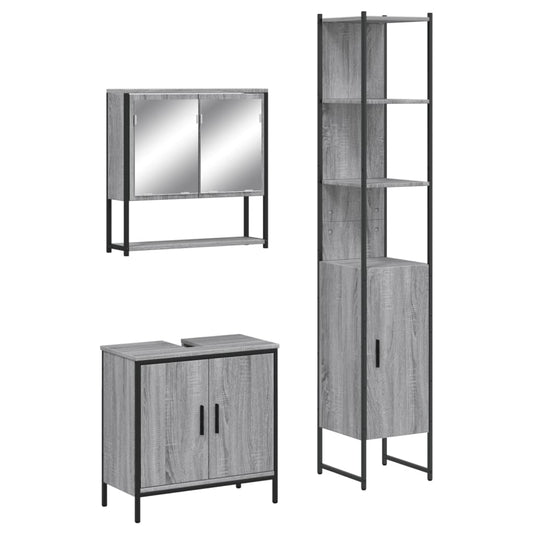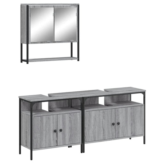 3-tlg. Badmöbel-Set Grau Sonoma Holzwerkstoff