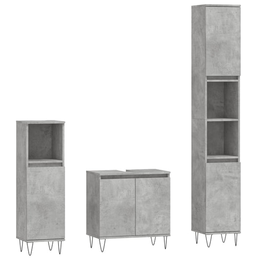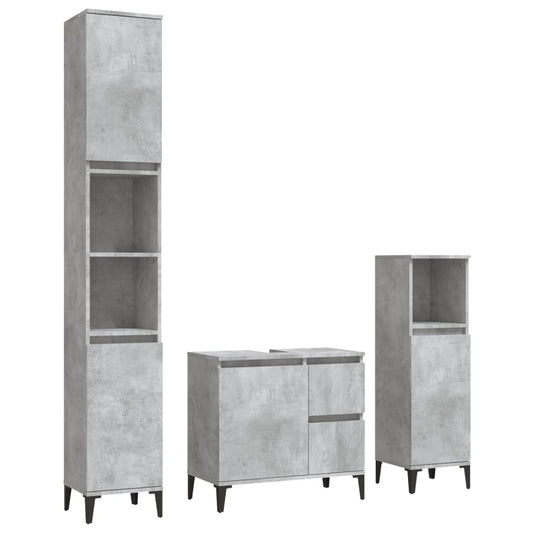 3-tlg. Badmöbel-Set Betongrau Holzwerkstoff