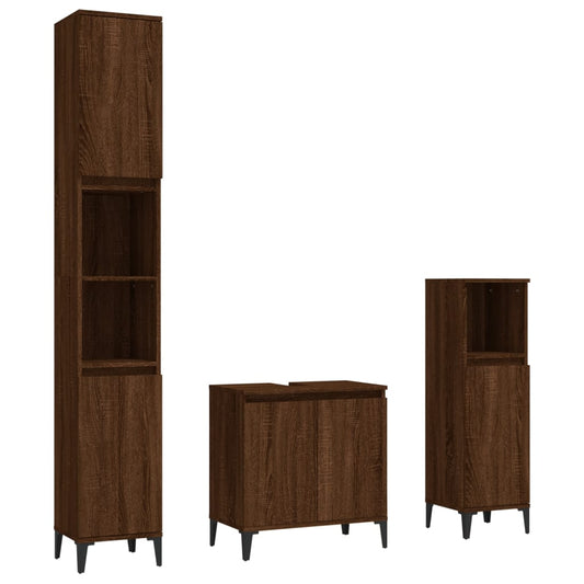 3-tlg. Badmöbel-Set Braun Eichen-Optik Holzwerkstoff