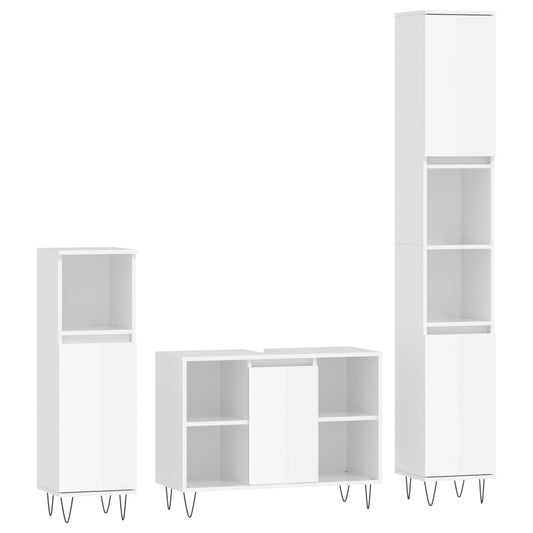 3-tlg. Badmöbel-Set Hochglanz-Weiß Holzwerkstoff