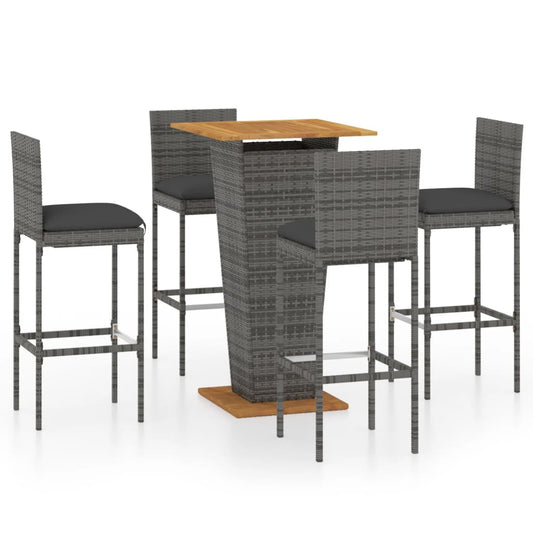 5-tlg. Gartenbar-Set mit Kissen Poly Rattan Grau