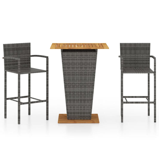3-tlg. Gartenbar-Set mit Kissen Poly Rattan Grau