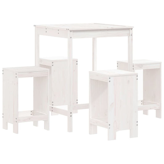 5-tlg. Gartenbar-Set Weiß Massivholz Kiefer