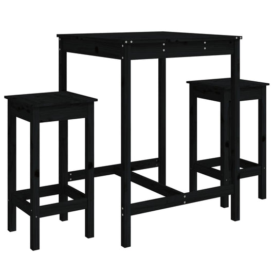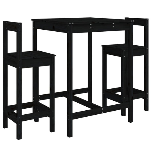 3-tlg. Gartenbar-Set Schwarz Massivholz Kiefer
