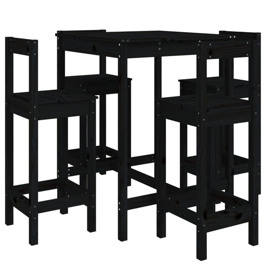 5-tlg. Gartenbar-Set Schwarz Massivholz Kiefer