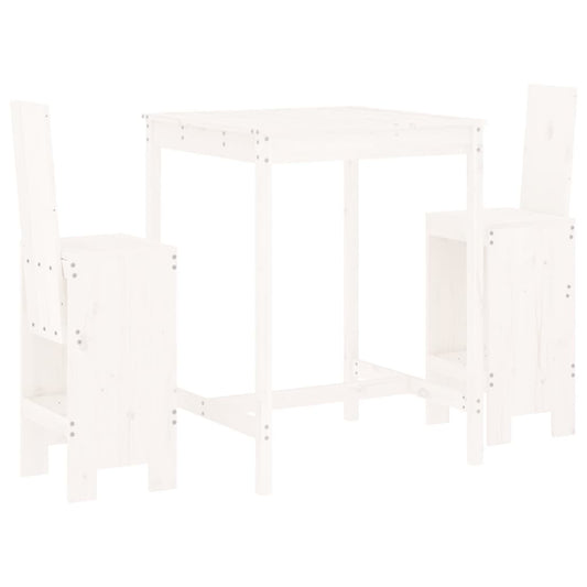 3-tlg. Gartenbar-Set Weiß Massivholz Kiefer