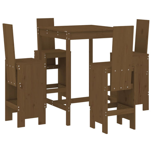 5-tlg. Gartenbar-Set Honigbraun Massivholz Kiefer
