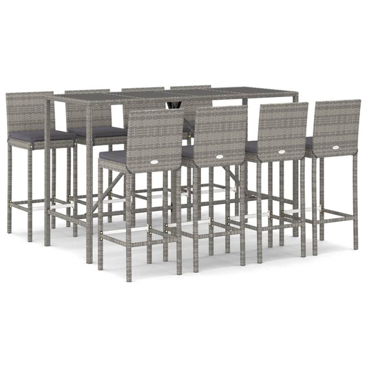 9-tlg. Gartenbar-Set mit Kissen Grau Poly Rattan