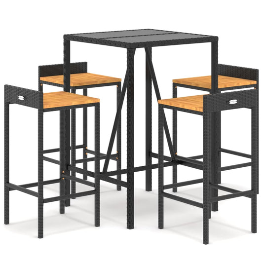 5-tlg. Gartenbar-Set Schwarz Poly Rattan & Massivholz Akazie