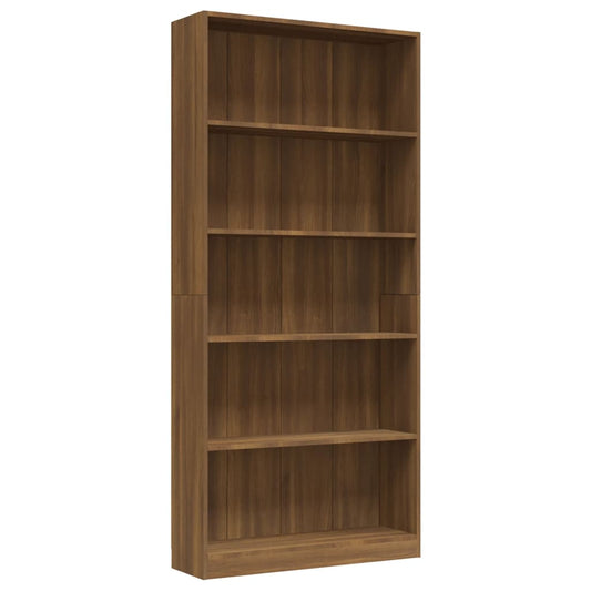 Bücherregal 5 Fächer Braun Eichen-Optik 80x24x175 Holzwerkstoff
