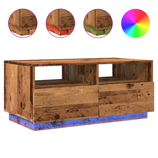 Couchtisch mit LED-Leuchten Altholz-Optik 90x49x40 cm