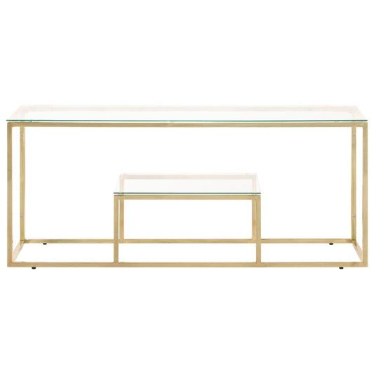 Couchtisch Golden Edelstahl und Massive Holzschwellen