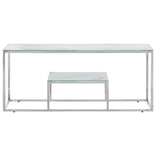 Couchtisch Silbern Edelstahl und Massivholz Akazie