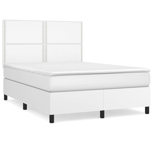 Boxspringbett mit Matratze Weiß 140x200 cm Kunstleder