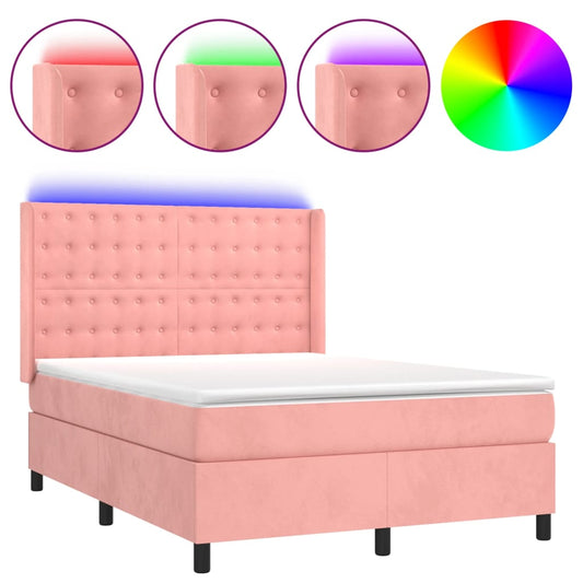Boxspringbett mit Matratze & LED Rosa 140x200 cm Samt