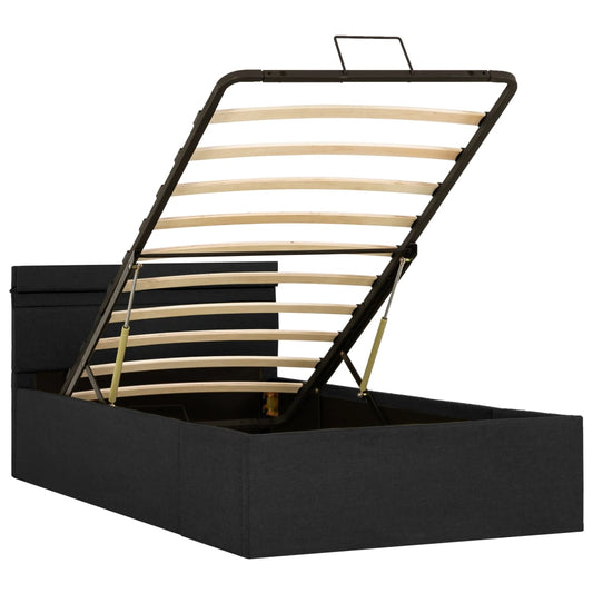 Bett mit Bettkasten Hydraulisch LED Dunkelgrau Stoff 90x200 cm