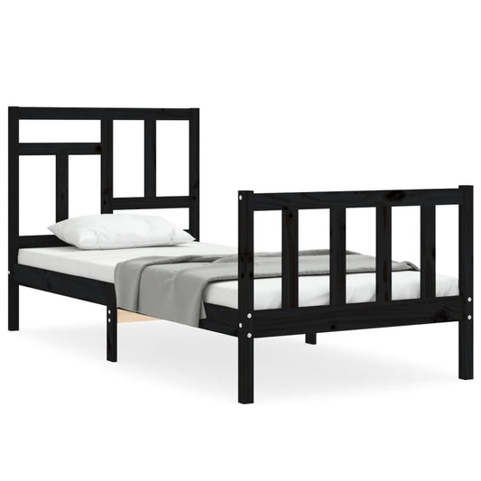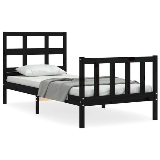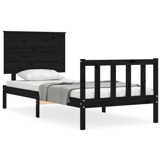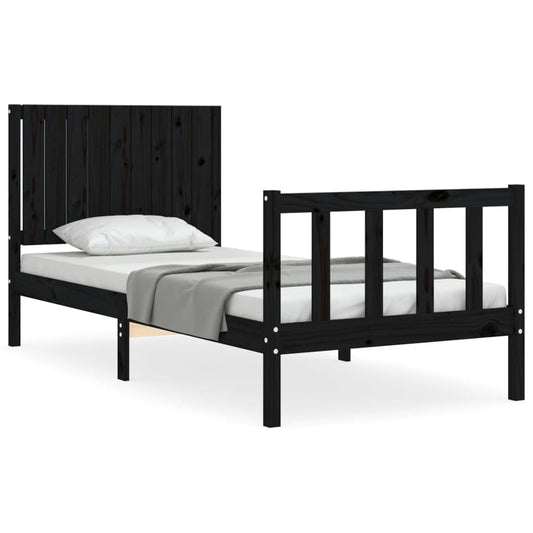Massivholzbett mit Kopfteil Schwarz 90x200 cm