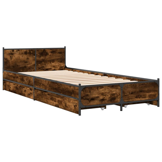 Bettgestell mit Schubladen Räuchereiche 90x200cm Holzwerkstoff